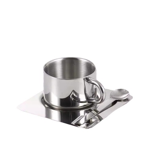 Gran oferta, juego de tazas de café Expresso de acero inoxidable, juegos de té, juego de tazas de café con leche con cuchara y posavasos