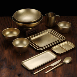 Plato de acero inoxidable dorado de lujo coreano para barbacoa plana Vintage, plato de tenedor antiguo, plato grueso de plata, postre, Buffet, bistec, plato de fruta