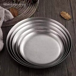 Plato de cena para barbacoa, platos de ensalada, acero inoxidable, logotipo personalizado, estilo coreano, fiesta, redondo, juego de platos de diferentes tamaños